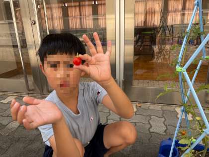 春に植えたミニトマトが真っ赤な実となり収穫できるようになりました。