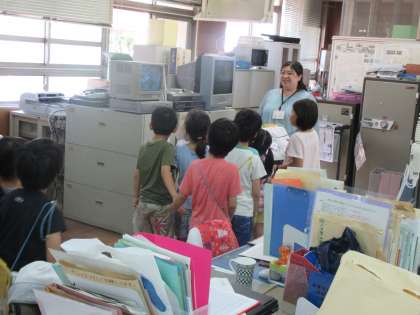 1年生が入学し、約一か月半が経ちました。教室で学習したり、運動場で遊んだり給食ホールで給食を食べることで学校生活に慣れてきました。しかし、広い学校の中では、行ったことがあるところは限れており、行ったことのない場所がまだまだたくさんありあます。そこで生活科の学習で「学校たんけん」をしました。