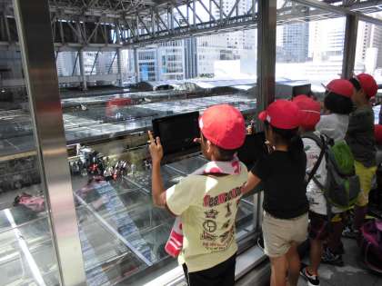 6/10(金)に3年生が社会見学にいきました。環状線で一周し、車窓から見える大阪市の建物や公共施設(大阪城 大阪ドーム 梅田スカイビル 阿倍野ハルカス等)をタブレット機器で写真を撮りました。その後、大阪駅で下車し、大阪駅の近代的な施設や設備を見学しました。