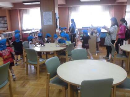 6/29(水)に住吉保育所・住吉幼稚園の園児たちが住吉小学校の5階にある天文学習室でプラネタリウム体験をしました。ドームに夜空が映し出されると、満点の星空が広がります。園児たちは星の美しさに「きれい」「すごーい」「いっぱい星がある」と歓声を上げていました。その後、ブックハウスで読書体験をし、ブックハウスの広さと本の多さにとてもびっくりしていました。