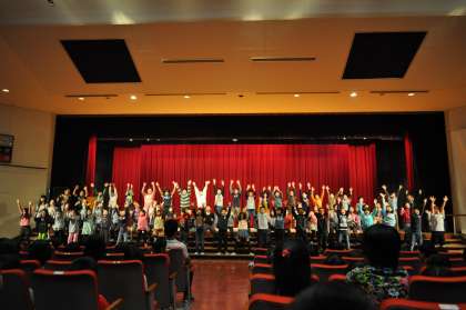 来る11/22(金)、本校講堂において「住吉区交歓音楽会」が開催されます。本校からは、4年生が出場します。これに先立ち、11/20(水)、本校の他学年に向け、この音楽会での発表曲が披露されました。曲目は、合唱「変わらないもの」と手拍子「クラッピング・ファンタジー 第3番」です。気持ちがこもった美しい歌声と、打楽器のように体全体で刻むテンポよいリズムのボディパーカッションに会場は圧倒され、大きな賞賛の拍手が響きました。学年全体が心を一つにした、すばらしい発表でした。