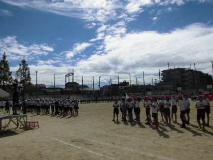 今週の日曜日10/2は、運動会です。各学年での練習は終盤を迎えています。9/26(月)9/27(火)は、全体練習を行いました。開閉会式や入場行進、準備運動や全校競技の大玉送り、応援合戦等の練習を全校児童で行いました。