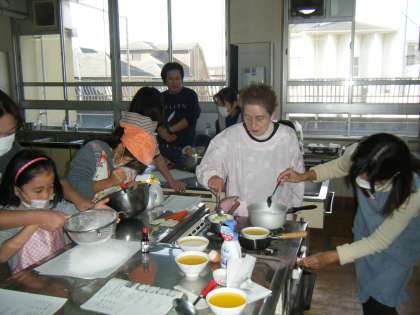 去る、12月14日(土)に生涯学習ルーム主催の生涯学習料理講習会が開催されました。今年度もたくさんの子どもたちと保護者、生涯学習委員の方々が集まり、楽しくマドレーヌ作りを行いました。泡だて器を使っての生地づくり、メレンゲづくりと、子どもたちは大忙し。マドレーヌが焼きあがると、「おいしそう」「きれいにできてよかった」「早く食べたい」など、子どもたちは保護者の方々と楽しそうに話していました。マドレーヌを食べる時の子どもたちの満面の笑顔が、とても印象的でした。