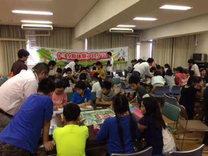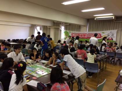 5・6時間目には、ボードゲームを通して、子どもたちが事業主になって会社の経営を考えながら、環境やエコに投資していく体験をしました。