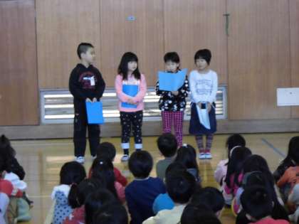 本校では、各学期の始業式と終業式の際に、輪番で各学年の児童が数名ずつ発表するという取組みを進めています。