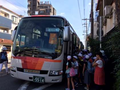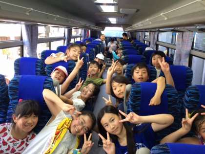 2台のバスに分かれて、ちょうど9時に出発しました。
