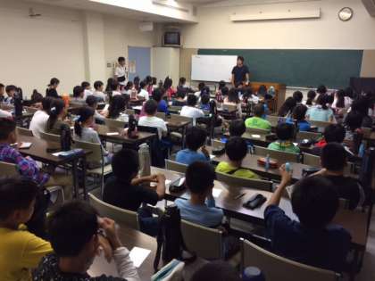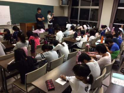 研修室で、今日の活動、楽しかっこと等、葉書に書いています。