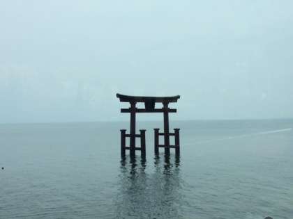昨日カッターでくぐった、白髭神社の鳥居前を通過しました。