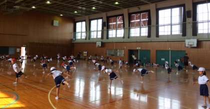 日頃の体育活動をもとに,運動することの楽しさや喜びを味わい,一人一人の個性を発揮して互いに高め合い,異学年との交流を深める中で,子どもたちはたくましく成長しています。