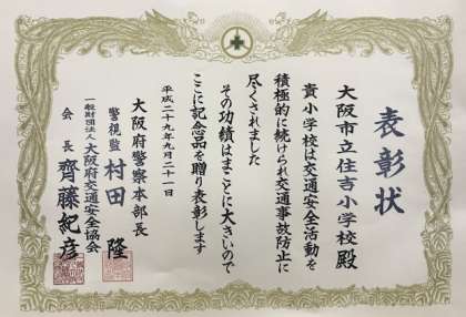 そこで、交通安全運動を積極的に続け、交通事故防止に努めたことを認めていただき表彰を受けました。