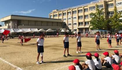赤組も,白組も力いっぱい応援の練習に励んでいます。
