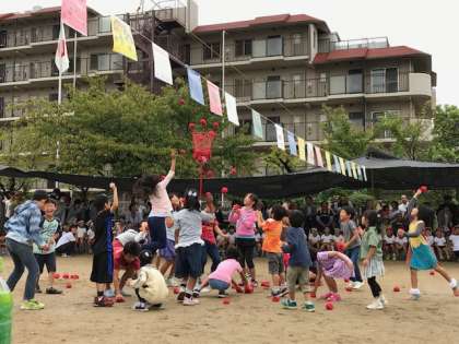 小学校の子どもたちも、卒園生の競技に楽しく参加していました。