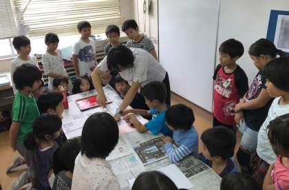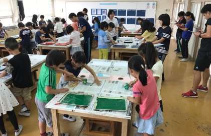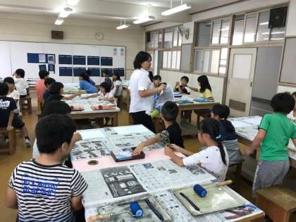 子どもたちは、楽しく版やローラーを使い学習に取り組んでいました。