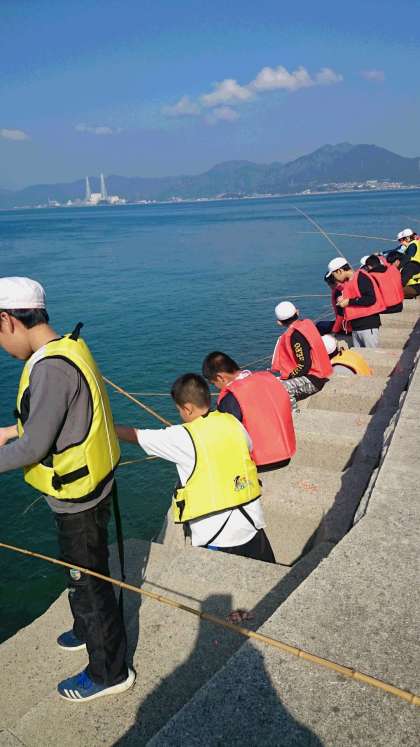 サイクルラリーを終えて、体験プログラムが始まりました。フィッシングチームは、みんな真剣に海に釣糸を垂らしています。続々と魚が釣れています。