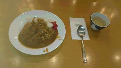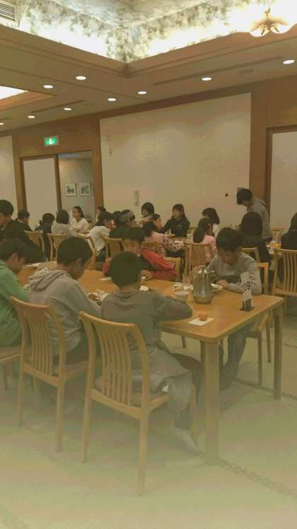 活動プログラムが終わり、おみやげも買いました。昼食のカツカレーを食べて、そろそろ宿舎を出発します。