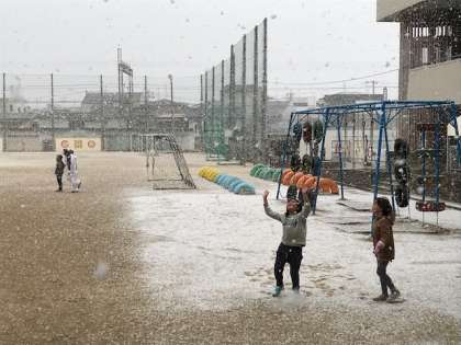 校庭に薄っすら雪が積もりました