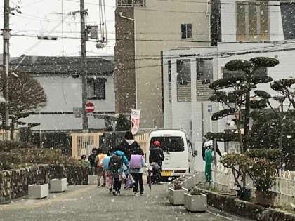 放課後ですが、校庭に薄っすら雪が積もりました。