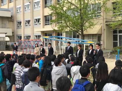 子どもたちには,「あいさつ」「思いやり」「目標を立ててやり通す」ことを大切にしてほしいと,話しました。また,魔法のことばとして「おはようございます」「ありがとう」「ごめんなさい」等の言葉を使うと気持ちが通い,温かい気持ちになります。周りの人,誰にでも,自分がしてほしいと思う態度や話し方で接してほしいと思います。