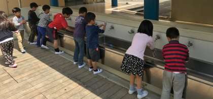 1年生にとっては,小学生になって初めての給食です。本校には給食ホールがあり,全校児童が一堂に会し,みんなで給食を食べます。