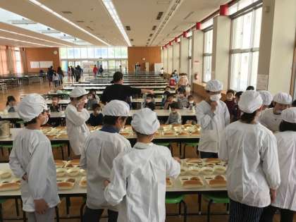 1年生が、給食の進め方に慣れるまできれいに配膳をしてくれます。