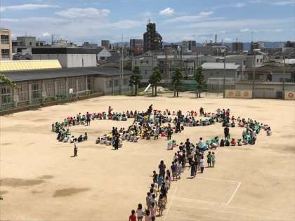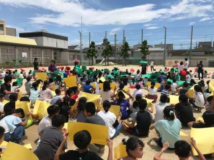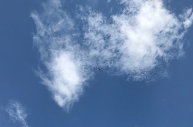 空を見上げて、随分近くにセスナ機が飛んできて、みんな大興奮。
