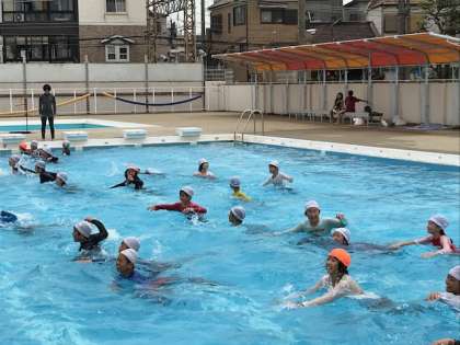 安全教育の一環として、5年生の児童が着衣泳の学習を行いました。