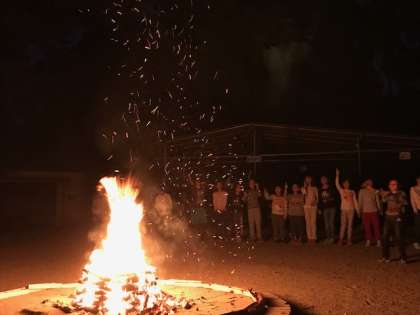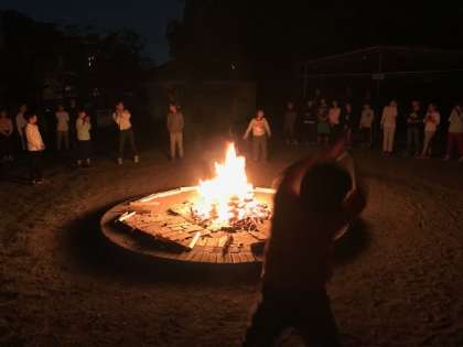 子どもたちのスタンツ、猛獣狩りが始まりました!とても楽しいです!