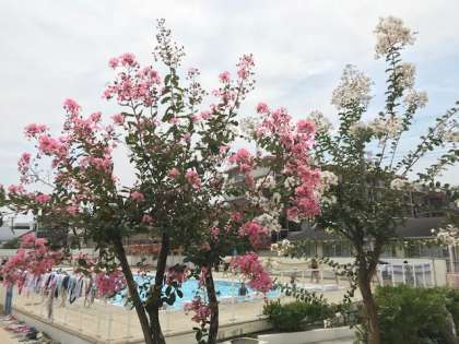 校庭のサルスベリの木の花が、きれいに咲いていました。