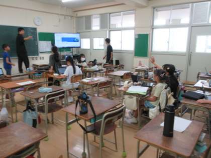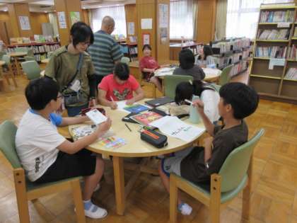 上の写真:放送委員会…2学期の放送クイズを考えていました。
