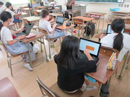 下の写真:保健委員会…「熱中症」のポスターをパソコンで作っていました。