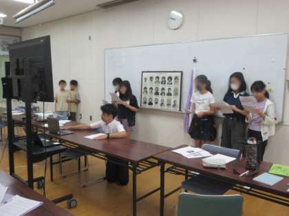 全校児童で黙祷した後、児童会のみんなが集会の中心となり、当時を再現した紙芝居の読み聞かせを行いました。