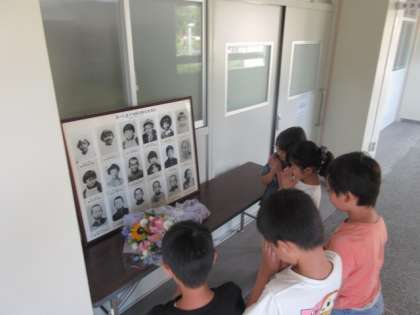 終わってからすぐに、校長室の前に置いている写真に手を合わせてくれる児童もいました。