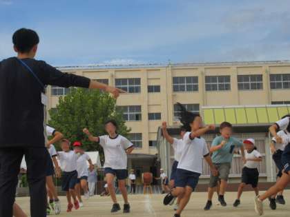 今日は応援団も運動場での初めての練習に臨みました。