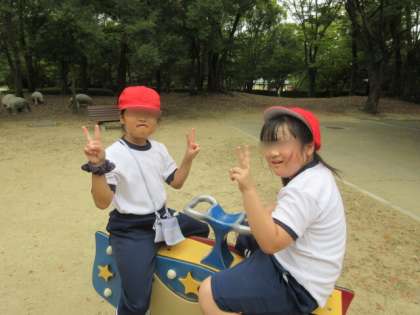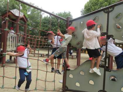 遊具で元気に遊び、楽しそうに公園で遊びました。