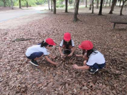 いろんなところに落ち葉やどんぐりなど秋を見つけながら住小に戻ってきました。