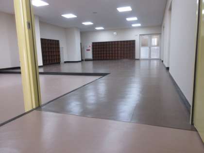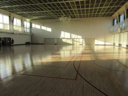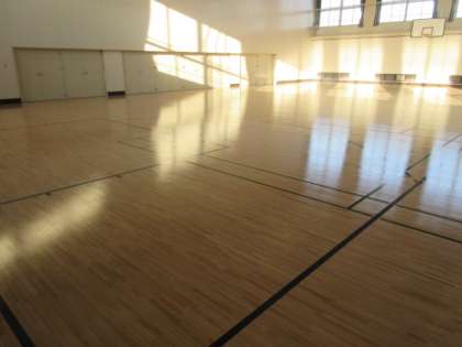 4月から改修工事に入っていた講堂・体育館ですが、体育館のみ完成しました!