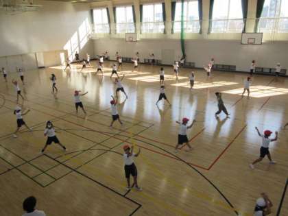 今日の1時間目から早速体育館を使って6年生が運動会練習を行いました。
