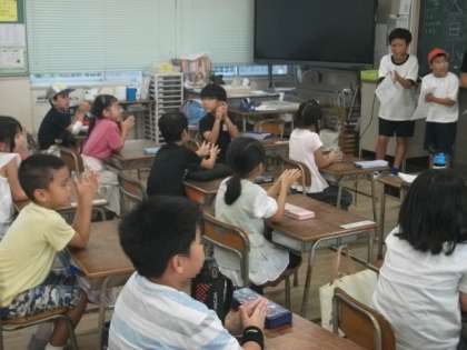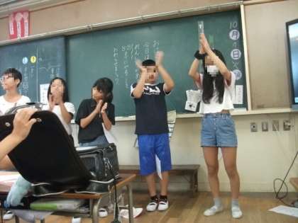 教室に応援団が来て、拍手での応援の仕方を教えてくれました。