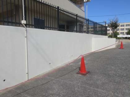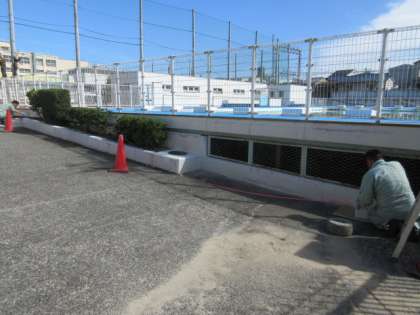 気持ちのいい運動会に向けて、管理作業員さんが南門の壁の塗装をしてくれています。