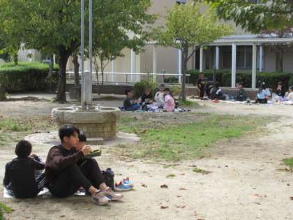 遠足は延期になったけれども、学校でお弁当食べるのもいいですね。
