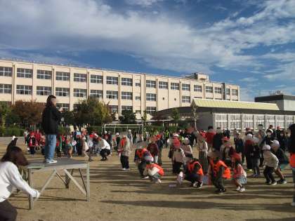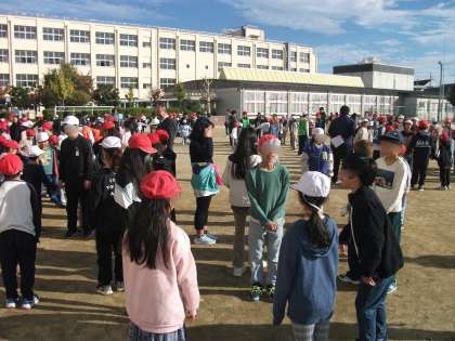 前、後ろ、右、左♪というと、みんなは反対に動きます。