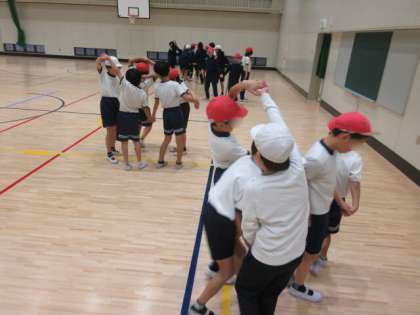 2組は、ミニ室内オリンピックのような活動で、「かごめかごめ」などに取り組みました。