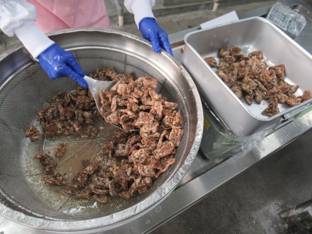 くじらは大阪市の学校給食では、1年に1回しか出ません。なかなか食べる機会がないため、給食で食べるのを楽しみにしている児童もいました。教室では、「外はカリっと、中はジューシーでおいしい」と味わって食べていました。
