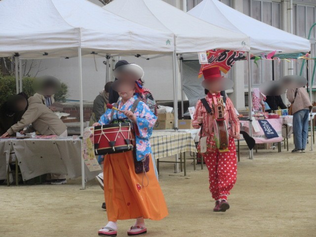 今回のマルシェはPTA初めての試みで実施しましたが、PTA会長をはじめ、PTAの皆さんや地域活動協議会の方、いきいきの指導員の方、その他にも多くの方のご協力で盛大な会になりました。子どもたちは本当に喜んでいて、今日の朝も「マルシェ楽しかった~」と、多くの子が話していました。会長もチンドン屋さんの格好でマルシェを盛りあげていました!
