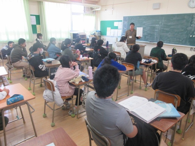 1組は中野先生と大喜利をしていました。中野先生に校長先生、さて、意味は?