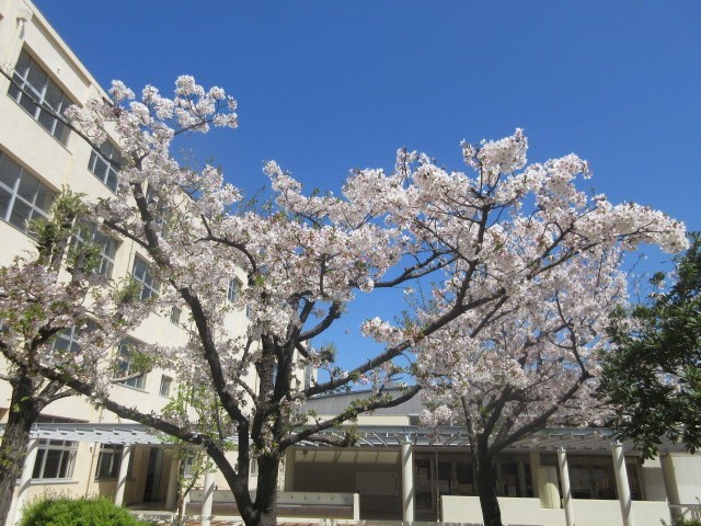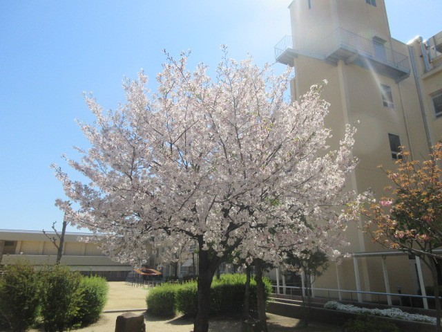 今日はとてもいいお天気で、学校の桜がまだまだきれいです!