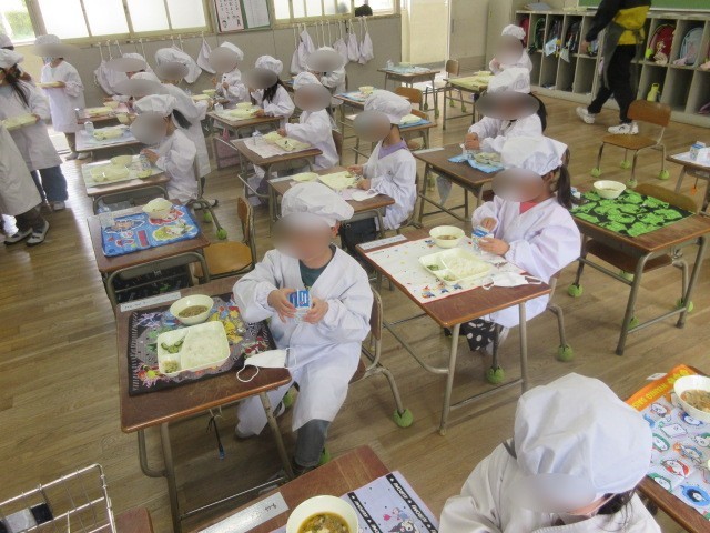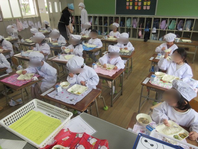 配膳は6年生が手伝いに来てくれて、優しく声をかけてくれていました。