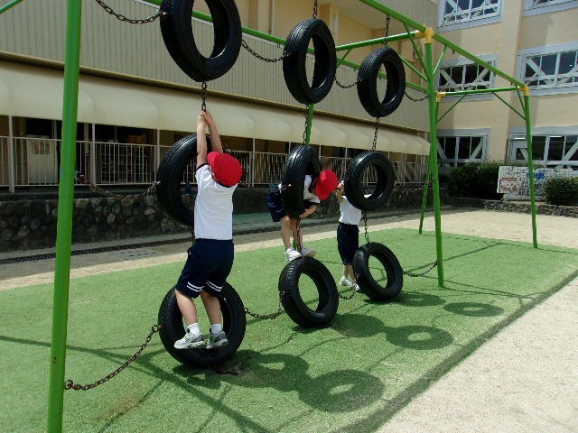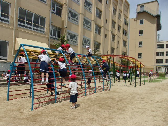 また、体育科の学習では、初めて使う遊具にも挑戦しました。ルールを守りながら、安全に楽しく活動することができました。