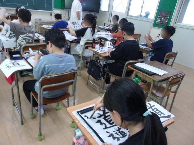 特に「しんにょう」の部分が難しく、バランスを取ることに苦戦していましたが、手本をよく見て練習していました。