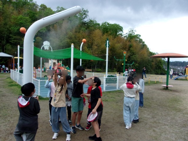 当日の朝も雨がパラパラと降っていましたが、遊具を雑巾できれいに拭いて楽しそうに遊んでいました!